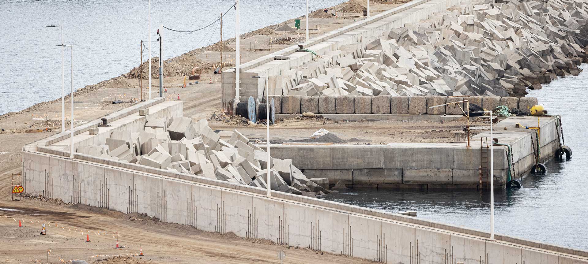 Espaldón y superestructura del dique de abrigo del puerto industrial de Granadilla