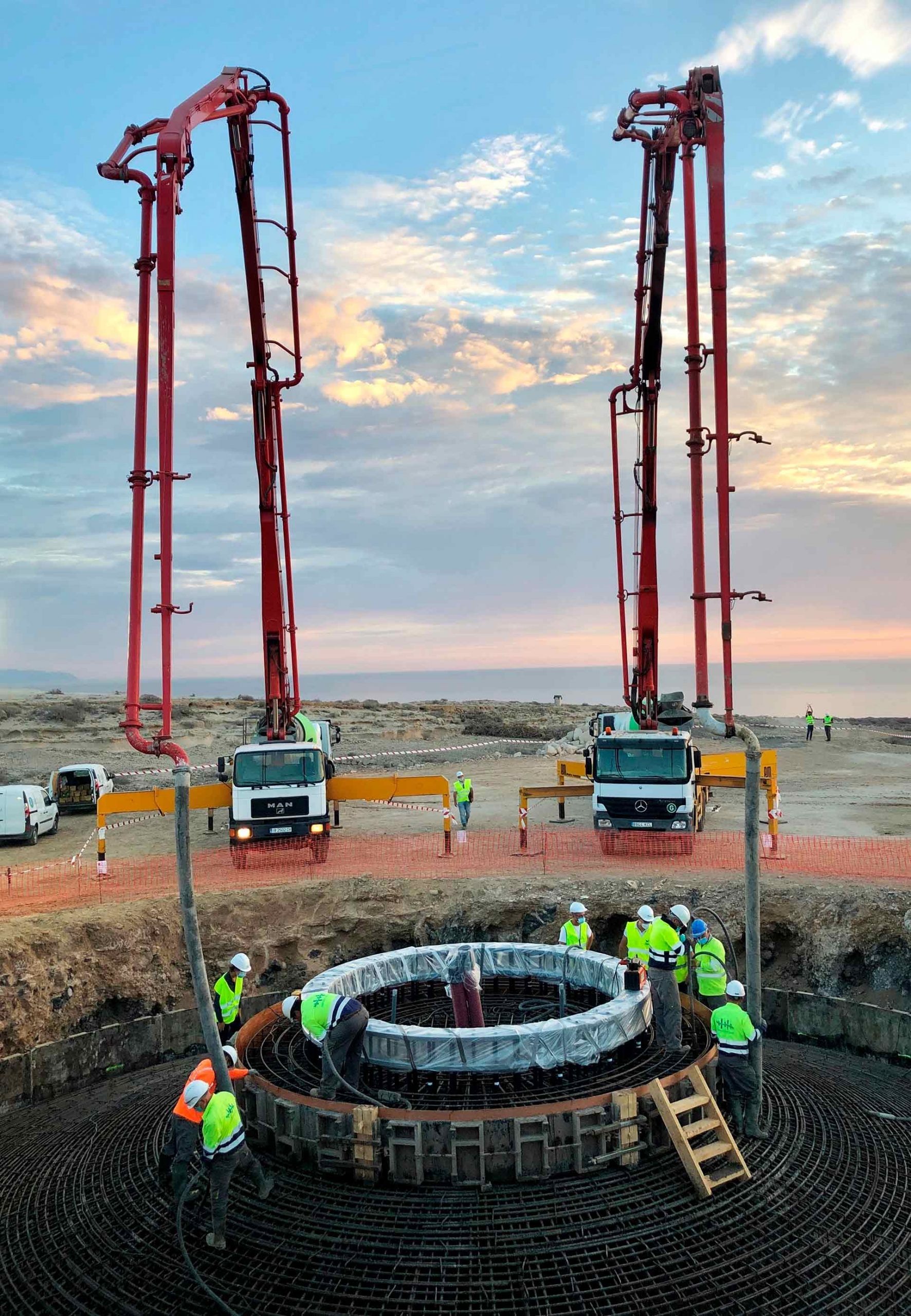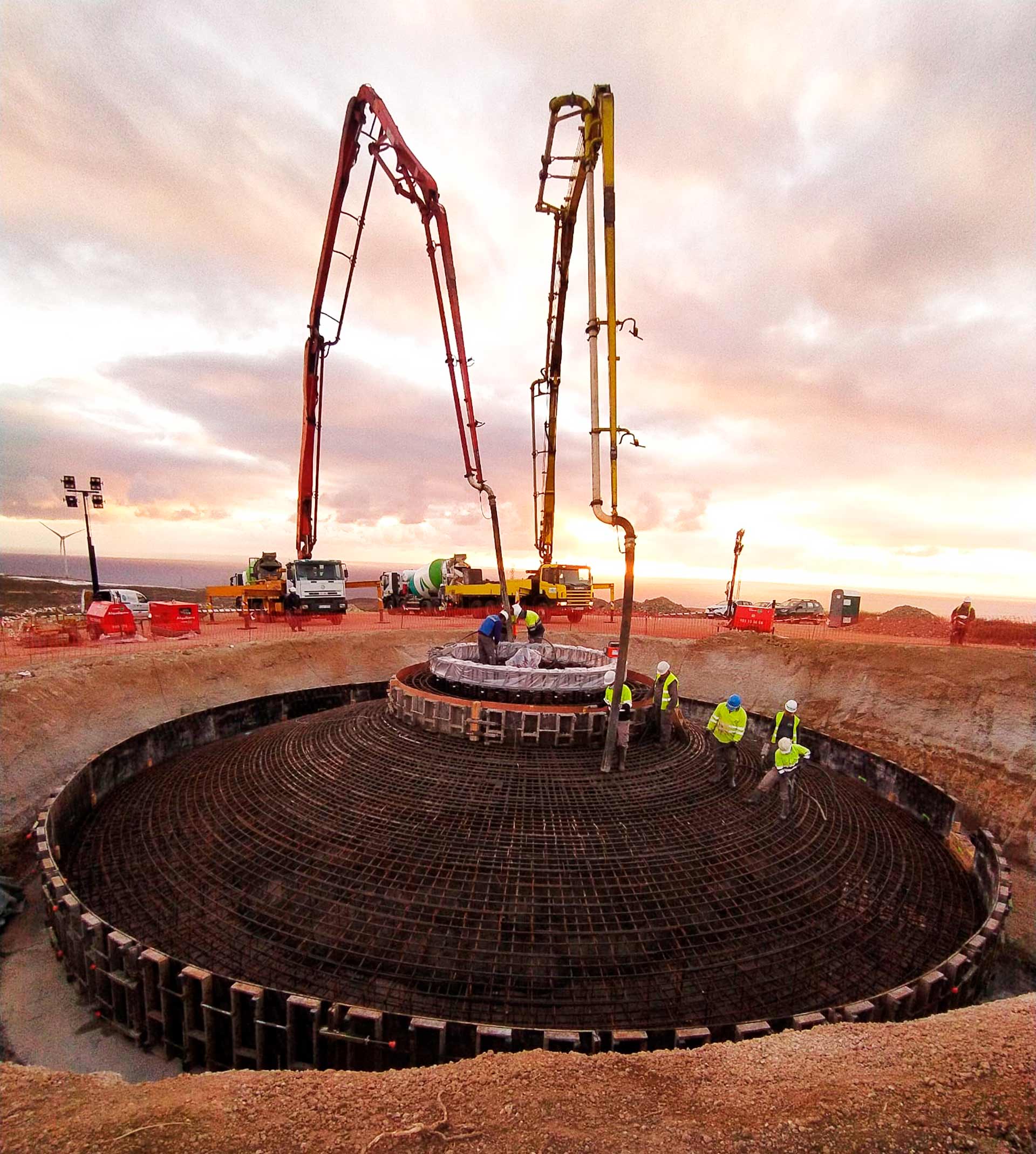 En 2020 Hormigones TAUCE realizó el suministro y bombeo de hormigón de estos dos parques eólicos, con 10 cimentaciones de unos 450m3 cada una, se realizaron diez puestas con 2 equipos de bombeo en paralelo y hasta 14 hormigoneras suministrando simultáneamente desde 2 de nuestras plantas situadas en el sur de la isla de Tenerife.